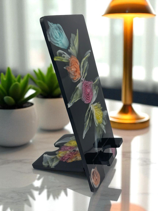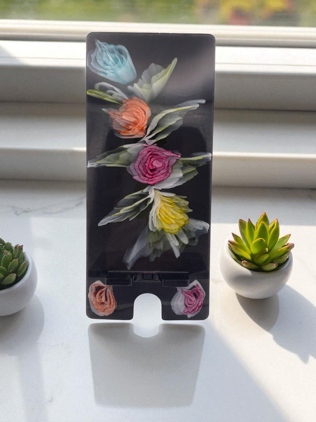 Black Resin Phone Holder – Multicolour 3D Bloom | Handmade in Bournemouth