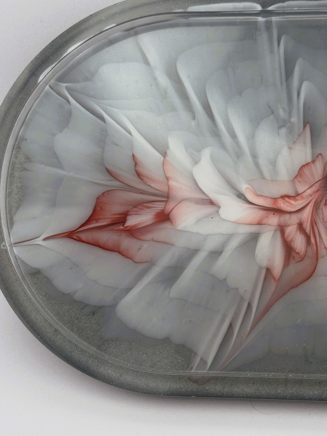 Elegant Floral Resin Trinket Tray with Gold Accent