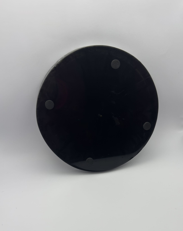 This round item has a diameter of 15.5 cm and a height of 2 cm. The weight is about 160 grams so it is very durable.