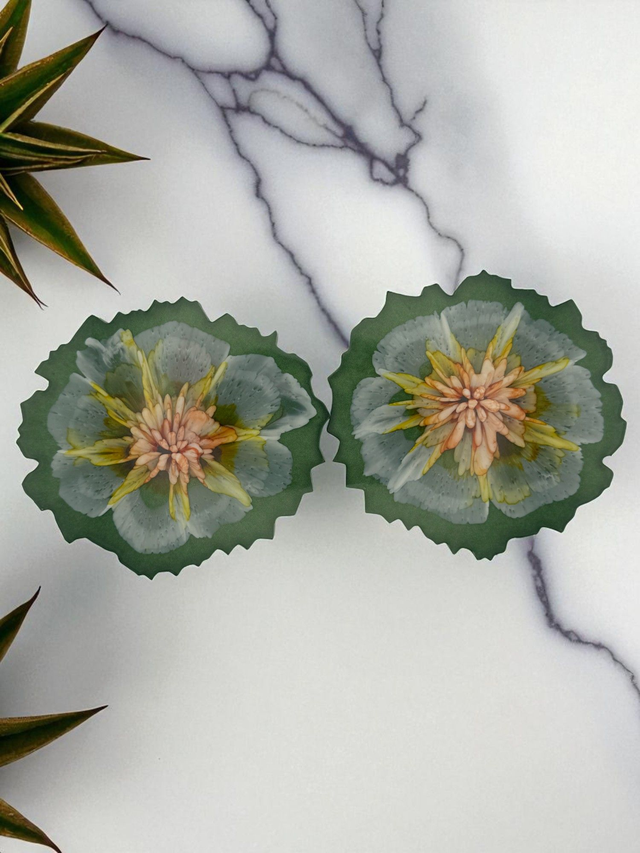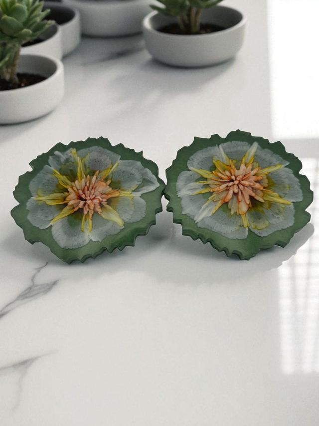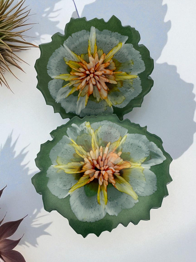 Green Geode Resin Coasters – Set of 2 with 3D Bloom Design