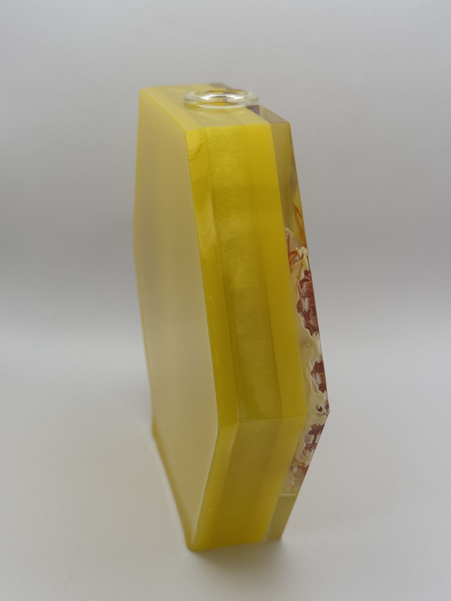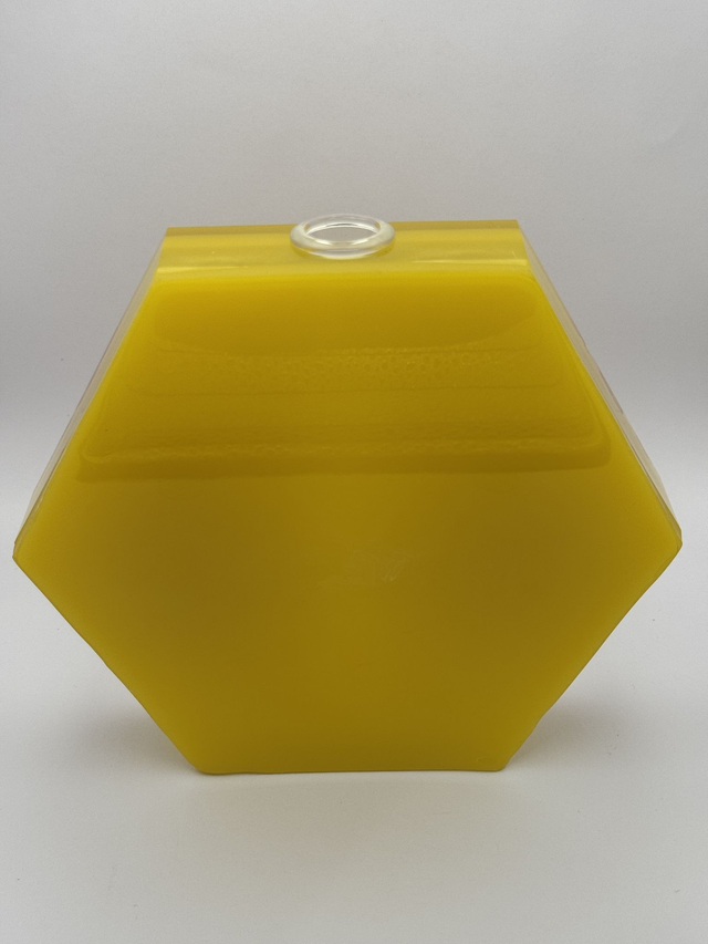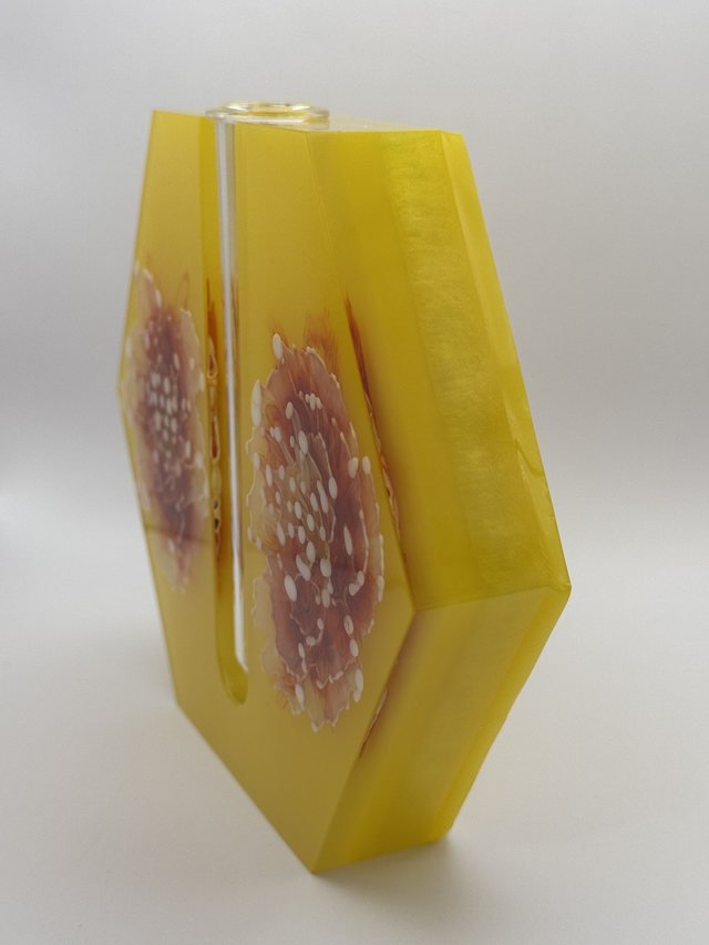 Radiate warmth and cheer with this yellow bloom hexagonal vase. Handcrafted with vibrant yellow hues and a stunning bloom design, itโ€™s the perfect way to showcase your plant cuttings while adding a touch of sunshine to your space. ๐ŸŒž๐ŸŒฟ๐Ÿ’›